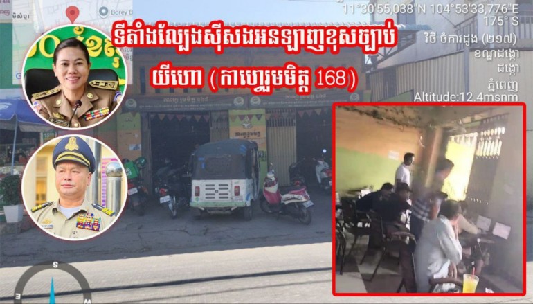 ទីតាំងល្បែងស៊ីសងអនឡាញខុសច្បាប់ យីហោ (កាហ្វេរួមមិត្ត 168) ដែលមានទីតាំងផ្លូវបេតុង ភូមិសំបូរ សង្កាត់/ខណ្ឌដង្កោ កំពុងតែបានដំណើរការជាធម្មតា ខណៈដែលអាជ្ញាធរមូលដ្ឋានហាក់មិនទាន់បានជ្រាបជាដំណឹង ! សូមលោក ជេម ស៊ីថា អធិការនគរបាលខណ្ឌដង្កោ ចាត់មន្ត្រីជំនាញចុះត្រួតពិនិត្យផងទាន!! ឯណា ភូមិ/សង្កាត់មានសុវត្ថិភាព របស់រាជរដ្ឋាភិបាល !!!?
