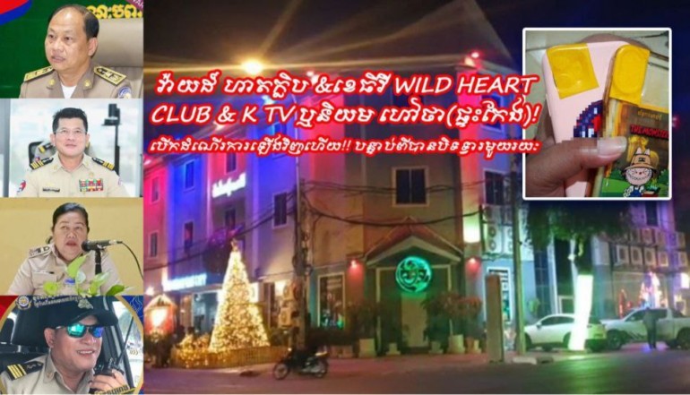 វ៉ាយដ៍ ហាតក្លិប &ខេធីវី WILD HEART CLUB & K TV ឬនិយម ហៅថា (ផ្ទះកែង)! បើកដំណើរការឡើងវិញហើយ!! បន្ទាប់ពីបានបិទទ្វារមួយរយៈ តើមានអ្វីប្លែកបានជាមិនតំរូវអោយភ្ញៀវយកទូរស័ព្ទចូលបាន និងបិទស្កុតលើកាមេរ៉ាទូរស័ព្ទទៀតនោះ ? មជ្ឈដ្ឋានសង្គមស៊ីវិលស្នើ លោក ជា ខេមា អភិបាលខណ្ឌដូនពេញ សូមចាត់មន្ត្រីជំនាញចុះអធិការកិច្ចផងទាន!!!